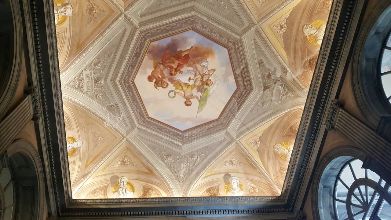 The “ancestral home of Alessandro Volta,” as stated on the plaque on its façade, stands at number 62 on the street that bears his name. Here the inventor of the electric battery was born on February 18, 1745, and died on March 5, 1827. It is recommended to reach it by walking along the medieval walls on Viale Varese as far as the intersection with Via dell’Annunciata, where the palace that once belonged to the Volta family begins. A row of stones arranged in an arch interrupts the regular line of the wall surrounding the historic center, recalling that the illustrious scientist had been granted permission to open a passage (technically known as a pusterla) allowing direct access to his home, later closed after his death. Palazzo Volta occupies an entire city block and is the result of the merging of several properties, a process that began when the southern section was purchased in 1536 by Zanino Volta, the first member of the family to move to Como from their original home in Loveno, a hamlet of Menaggio. It was Alessandro himself who, in 1803, bought the northern section from the Raimondi family, initiating the transformation of the pre-existing buildings into a single neoclassical palace. The completion of the property and the present façade date to after the great physicist’s death and were carried out by his heirs in 1861. A century later, the first floor of Volta’s house was purchased half by the Order of Engineers of Como and half by a law firm. Access to the rooftop garden is through the latter. One can still “feel” Volta’s presence simply by climbing the neoclassical staircase leading to the two properties: on the frescoed ceiling is the apotheosis of the Volta family, while along the perimeter appear portraits of illustrious citizens of Como, including the inventor of the battery himself and Pliny the Elder.