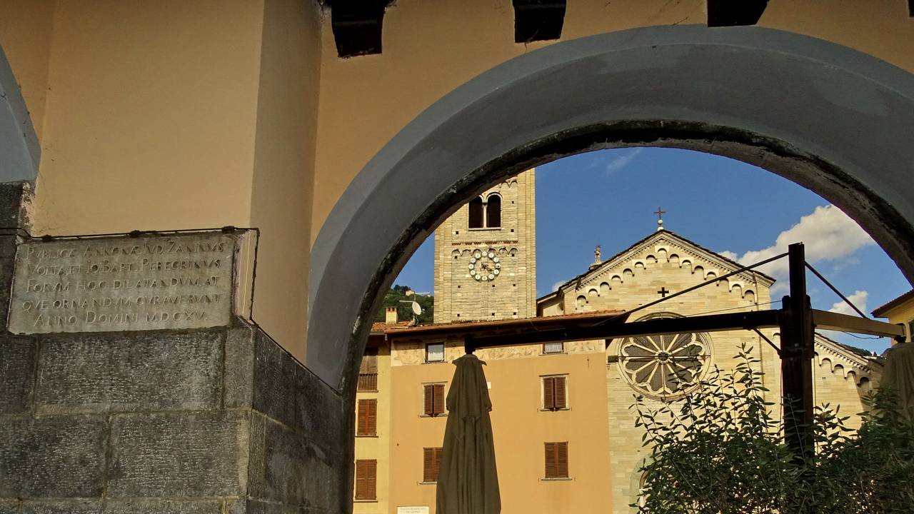The current Piazza San Fedele is believed to be the site of the forum of Roman Como. The marble head of Augustus (portrayed as pontifex maximus, therefore sculpted after 12 BC – before 14 AD) was found here in the 16th century. It was part of Paolo Giovio’s collections and is now on display at the Archaeological Museum. The basilica of the same name was built in the 11th century on the ruins of the Basilica of Saint Euphemia (5th century), believed to be Como’s first cathedral. It was surrounded by the church of San Pietro in Atrio (now an exhibition space in Via Odescalchi, at the time part of the square) and the baptistery of San Giovanni in Atrio, the remains of which can be seen in a bookshop and a bar opposite the basilica. The baptistery was adorned with eight Roman-era columns in cipollino marble, now located in Via Cantù, supporting the façade of the Alessandro Volta classical and scientific high school. Of the ancient cathedral, the basilica preserves two allegorical sculptures surmounted by holy water fonts. Beneath the main altar lie the relics of Fedele, who, according to tradition, escaped capture by the martyrs of the legendary Theban Legion in Como and was killed in Samolaco (SO), where Lake Como ended at the time and where his tomb was found in 964. A week after his death, Alessandro Volta was honored by the city in the Basilica of San Fedele. On this occasion, the young priest and patriot from Torno, Tommaso Bianchi, was invited to compose a poem in his honor. In 1829, Bianchi also wrote the first biography of the inventor of the battery, “Della vita del conte Alessandro Volta patrizio comasco” (The Life of Count Alessandro Volta, Patrician of Como). Under the portico on the western side of the square—the remaining part of a much larger one—there is a plaque commemorating an ancestor of the scientist, Zanino Volta, a grain decurion in the 17th century, when the market was held here.