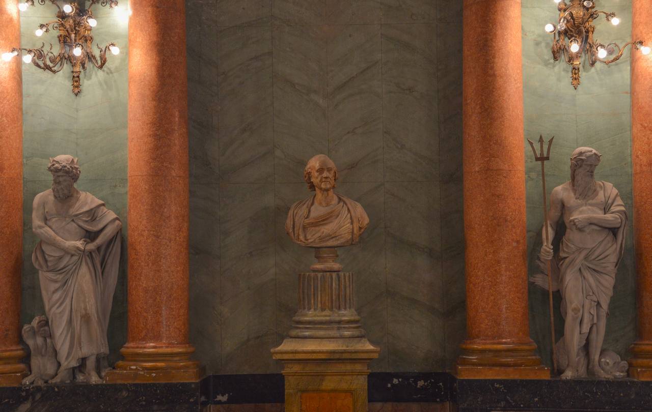 Villa Olmo, the most important among Como’s historic residences, conceals an ancient heart beneath its neoclassical forms and stands as a bright example of the city’s many layers, shaped first by the Plinys, then by Paolo Giovio, and finally by Alessandro Volta. It was built between 1782 and 1787 by Marquis Innocenzo Odescalchi, based on a design by the Ticinese architect Simone Cantoni, on the site where a medieval monastery of the Umiliati had previously stood. However, Giovanni Battista Giovio, a descendant of Paolo, argued in his Lettere Lariane (1803) that a villa had already existed there in Roman times: that of Caninius Rufus, described by Pliny the Younger in a letter (Epistulae I, 3) addressed to his poet friend, the fortunate owner of the property. “How is Como, our shared delight? And the charming suburban estate? And the plane-tree grove dense with shade?”… Giovio cites fragments of mosaic flooring and marble discovered between the sixteenth and eighteenth centuries, as well as a personal inspection that convinced him that this was the location of the ancient Comense suburbanus. Acquired by the Municipality of Como in 1925, Villa Olmo served as the main venue for the Volta celebrations of 1927 and, in its Hall of Honor, preserves a bust of the inventor of the electric battery—specifically one of the copies of Giovanni Battista Comolli’s sculpture chosen for the scientist’s tomb in the cemetery of Camnago Volta. In the Hall of Mirrors, another bust is dedicated to a member of the Giovio family, Felicia (1781–1849), daughter of Giovanni Battista, who lived in the villa for a period with her first husband, Innocenzo Porro Carcano.