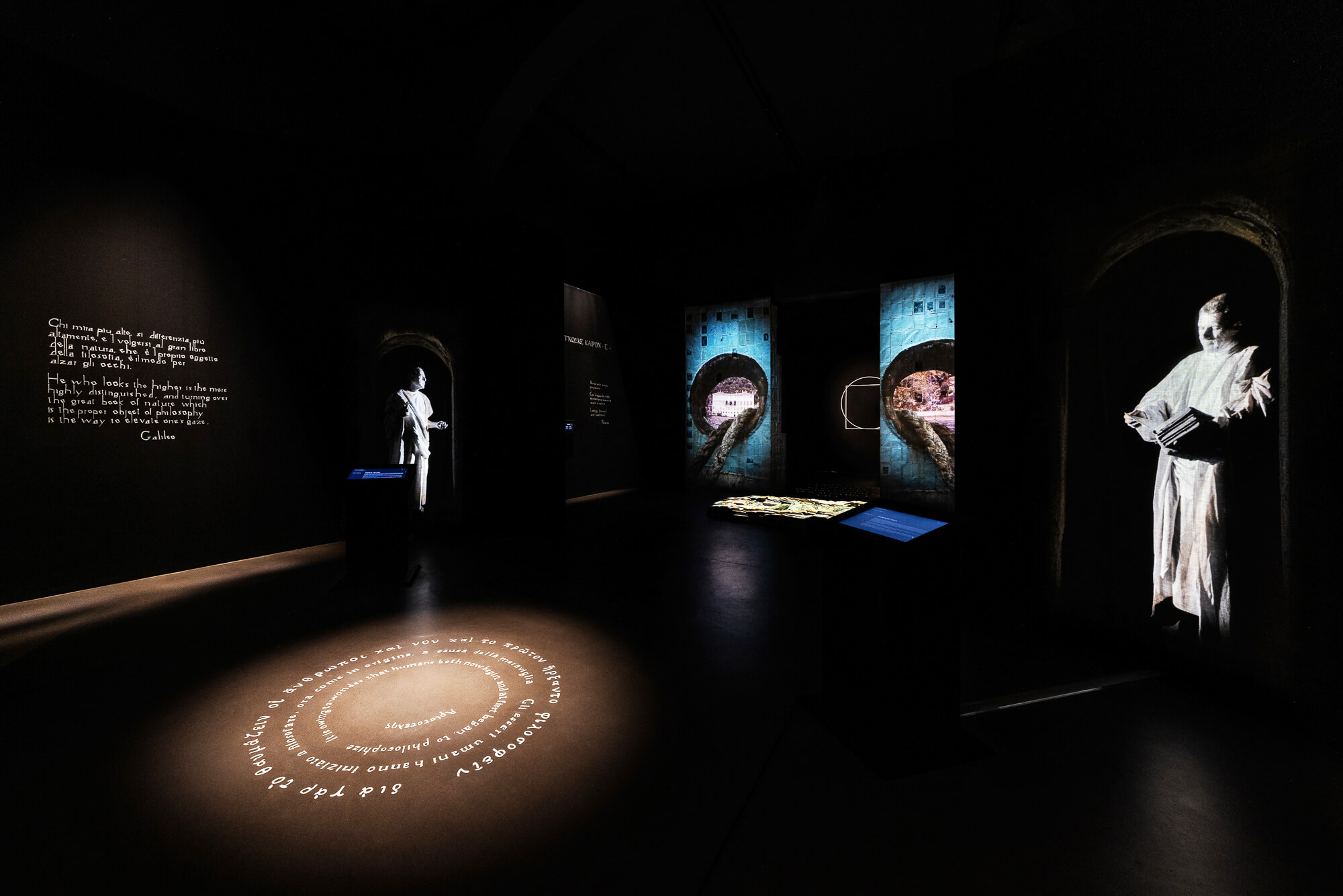 The exhibition is divided into three distinct areas: the Sala dei Savi (Hall of the Wise), dedicated to the story of the four figures; the Sala delle Meraviglie (Hall of Wonders), with immersive installations and audio-visual content; and L’Inventario del Mondo (The Inventory of the World), a space for temporary exhibitions dedicated to the history and culture of the Como area.