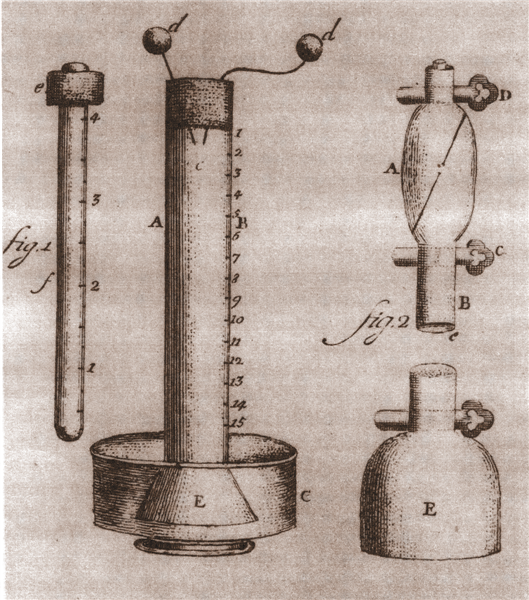After discovering the flammable air in the marshes near Angera, Volta observed that a mixture of flammable air and ordinary air, when subjected to an electric discharge, produced an explosion. To study this phenomenon quantitatively, he built a specific instrument: the eudiometer.