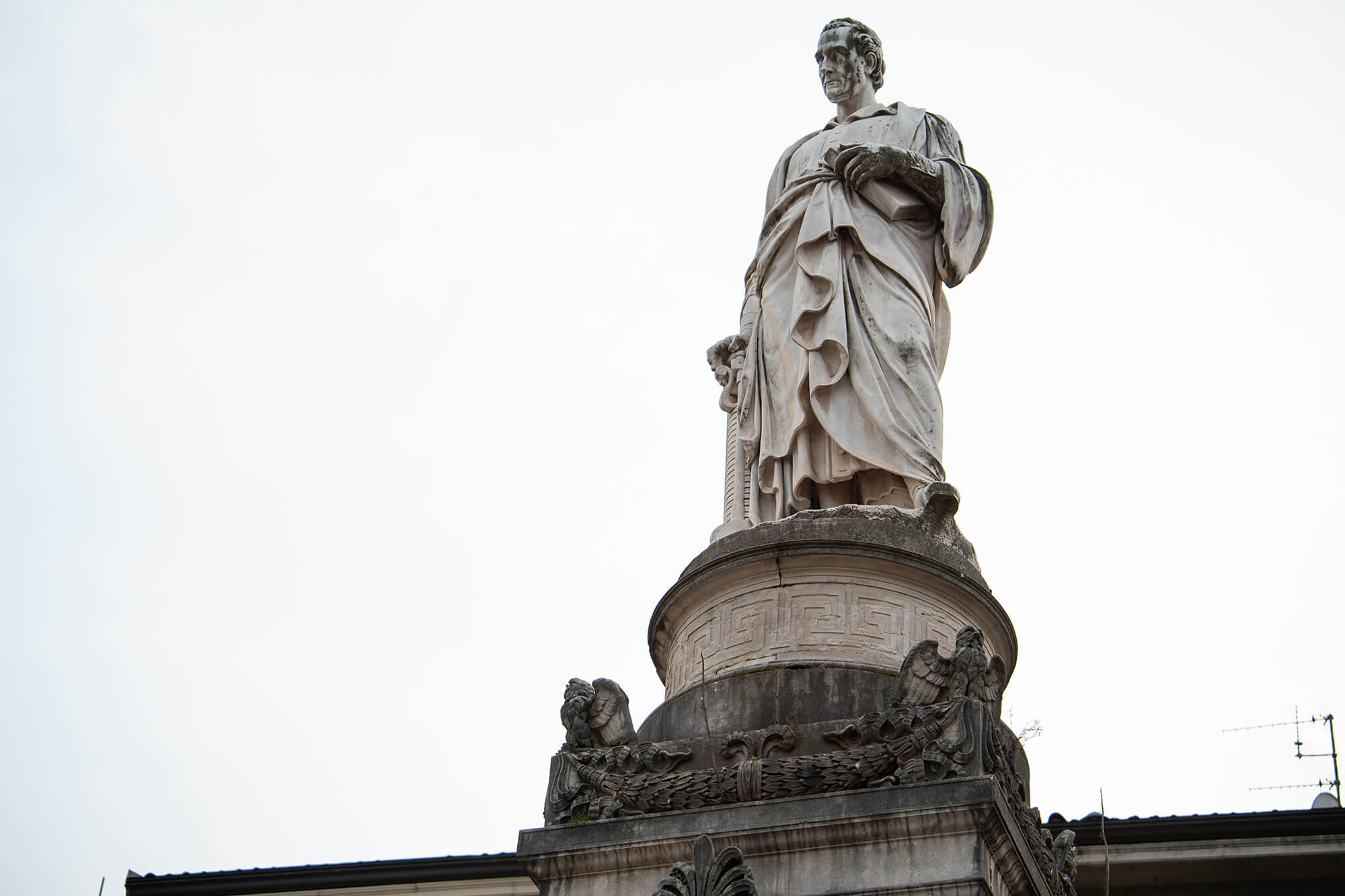 L’importanza di Alessandro Volta nella storia di Como è provata anche dal fatto che per lui si sia operata un’eccezione alla regola di non intitolare due “pubblici passaggi” alla stessa persona nella medesima città. Prima della dedicazione della via in cui si trova la sua casa natale, che con la riforma dello stradario del 1888 ha soppiantato le precedenti contrada di Porta Nuova (tratto sud) e contrada del Fontanile (tratto nord), è avvenuta quella della piazza in cui nel 1838 venne inaugurato il monumento al grande fisico, opera dello scultore Pompeo Marchesi, tra i massimi esponenti del neoclassicismo italiano. Da allora il nome di piazza Jasca – secondo Benedetto Giovio legato a una famiglia Aliasca che vi abitava – è stato sostanzialmente abbandonato a favore di quello dell’inventore della pila, che vi svetta al centro a figura intera, sopra un massiccio basamento realizzato da Francesco Durelli, docente all’Accademia di Belle Arti di Brera. Una dedica assai sobria, in linea con la personalità dell’omaggiato, contraddistingue il monumento: “A Volta – La Patria”. In occasione delle Celebrazioni del 1999-2000 il Comune di Como ha proceduto a una valorizzazione della piazza attraverso il rifacimento della pavimentazione, il ridisegno dell’arredo urbano e del verde, a la realizzazione di strisce luminose a pavimento. Il 5 marzo del 2022, 195° anniversario della morte dello scienziato, Fondazione Alessandro Volta ha inaugurato una nuova illuminazione del monumento a led.